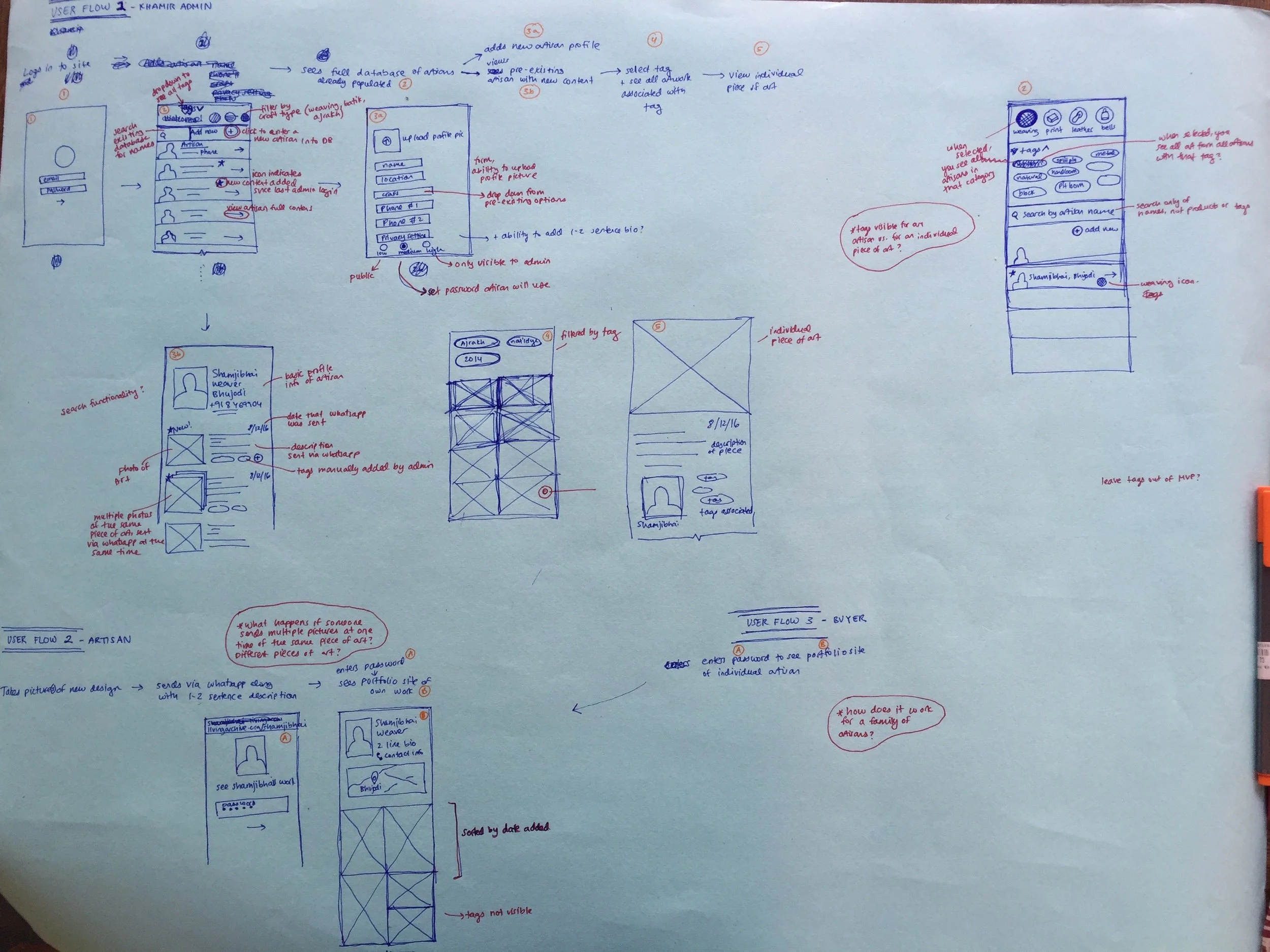 The project began with several months of user research and needfinding. Traveling to remote villages, I learned that artisans found it important to document their work for archival purposes, but also for sales. Smartphones were common even in the most far-flung places, and artisans often communicated with their buyers via Whatsapp. Though most artisans had a desire to put their work online, they also had concerns about protecting their IP.